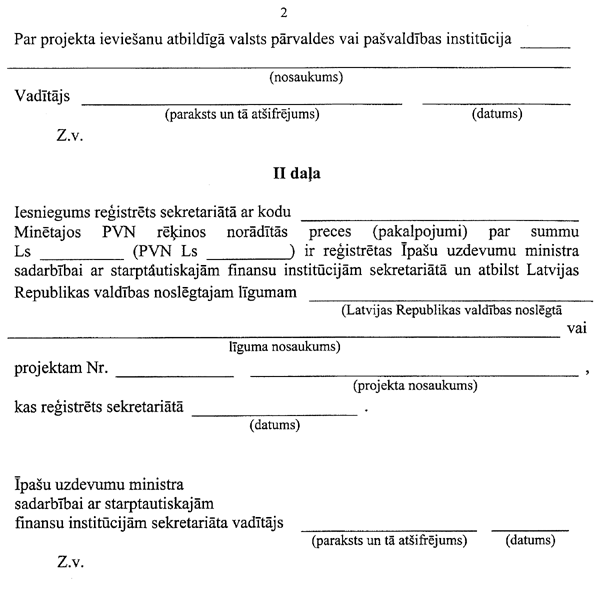 Iesniegums par pievienotās vērtības nodokļa 0 procentu likmes piemērošanu ISPA finansētajiem projektiem