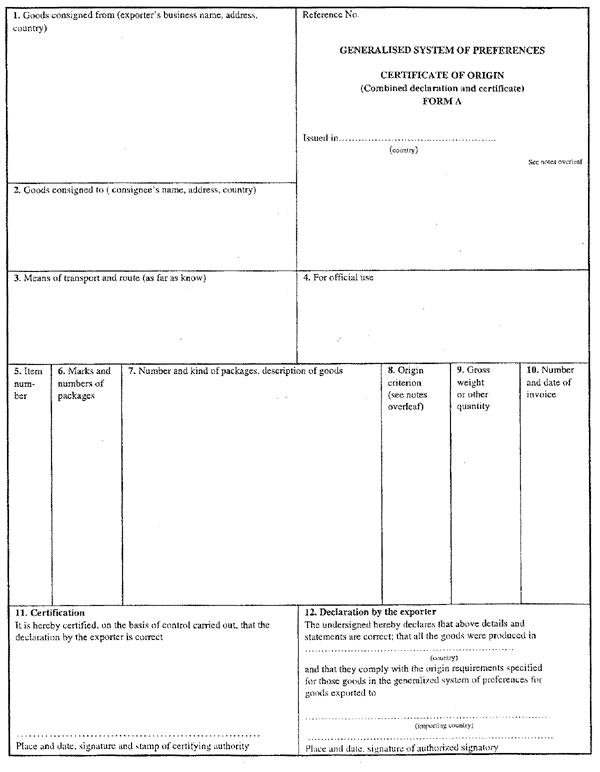 8. Preču izcelsmes sertifikāta (tekstilizstrādājumiem) (2.pielikums) veidlapas un vispārējās priekšrocību sistēmas preču izcelsmes sertifikāta (veidlapas A) (3.pielikums) veidlapas formāts ir A4 (210 x 297 mm). Ir pieļaujama -5 mm vai +8 mm atkāpe no noteiktā izmēra. Izmantojams balts rakstāmpapīrs (bez mehāniskiem celulozes piemaisījumiem), kas sver vismaz 25 g/m2. Sertifikātam ir zaļš smalki tīklots fons.