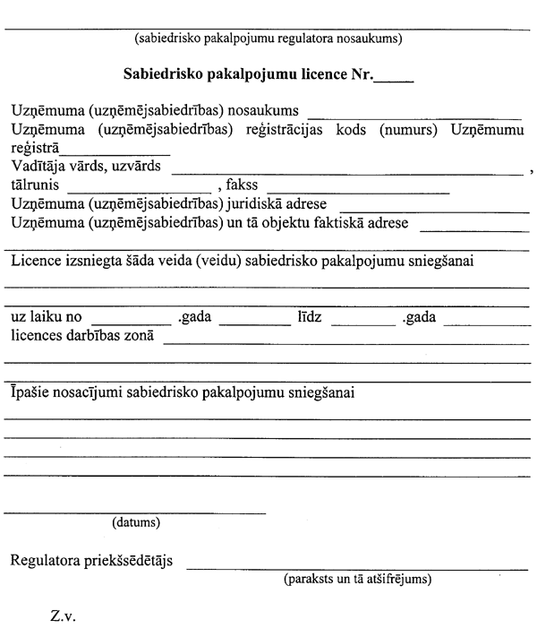19. Licence ir derīga tikai tajā noteikto veidu sabiedrisko pakalpojumu sniegšanai. Licences saņēmējs darbojas saskaņā ar normatīvajos aktos noteiktajām prasībām.