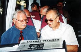 — Diemžēl ārvalstu presē joprojām sastopami aplami apgalvojumi par latviešu leģionāriem, kas Otrā pasaules kara laikā bija mobilizēti vācu armijā. Šādi apgalvojumi Krievijas plašsaziņas līdzekļos it kā nepārsteidz, it īpaši Latvijai aizvien noteiktāk tuvojoties NATO. Tomēr ir pārsteidzoši aplamus apgalvojumus redzēt arī rietumvalstu presē un lielo ziņu aģentūru izlaidumos. Vai jūsu darba grupai, kas tik daudz darījusi un dara Latvijas labā, ir kaut nedaudz izdevies izskaidrot amerikāņiem leģionāru patieso situāciju? Vai esat vismaz jutuši interesi un vēlmi izprast šos sarežģītos notikumus?