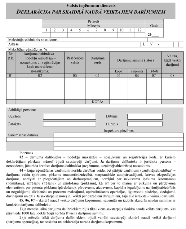 Skaidrā naudā veikto darījumu deklarēšanas noteikumi