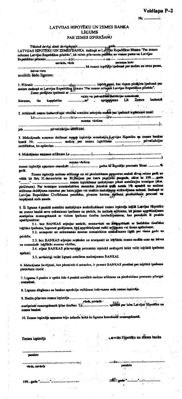 9.2. gadījumā, ja IZPIRCĒJS noteikto zemes izpirkšanas maksu dzēš pakāpeniski, tiek noslēgts līgums par zemes izpirkšanu ar pakāpenisku samaksu (veidlapa P–2).