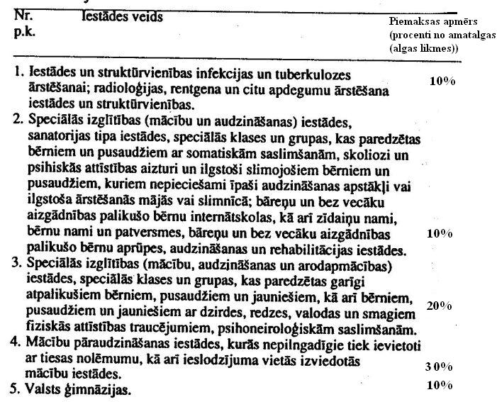 8.2. pārējo no valsts budžeta finansēto izglītības iestāžu vadītājiem amatalgu nosaka attiecīgā ministrija uz 1. septembri, samaksu par vadītāja darba kvalitāti nosaka attiecīgās ministrijas izveidota komisija uz 1. septembri un 1. janvāri.