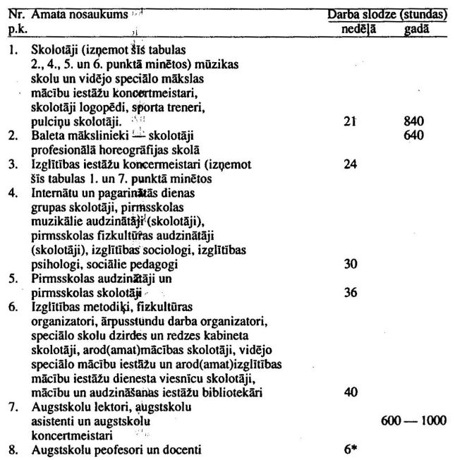 — arod(amat) mācības un speciālo priekšmetu skolotājiem — laiks, kas nostrādāts uzņēmumos, iestādēs un organizācijās specialitātē, kas atbilst mācību priekšmetu profilam;