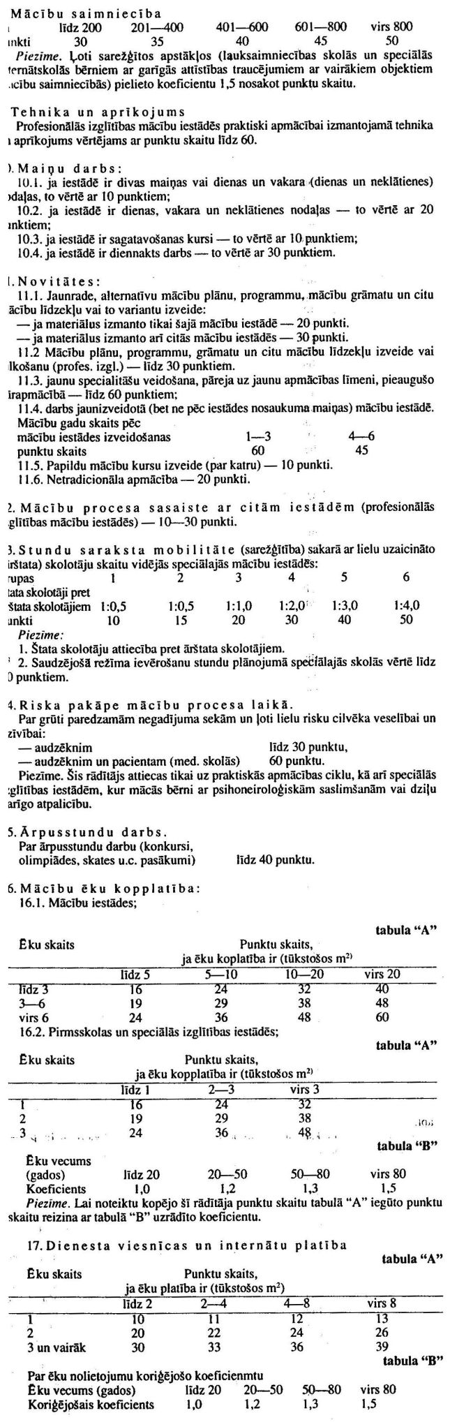 1. Ievērojot to, ka izglītības iestāžu vadošo darbinieku darba apjoms ir atkarīgs no vadāmās iestādes mācību un audzināšanas procesa, kā arī no iestādes apkopes un apkalpes zonas sarežģītības pakāpēm, izglītības iestādes un šo iestāžu struktūrvienības iedala sešās sarežģītības grupās.