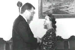 “Es patiesi lepojos ar to, ka šodien varu ar jums tikties neatkarīgā Latvijā un pieņemt jūs Prezidenta pilī,”sarunas noslēgumā atzina G.Ulmanis un pasniedza māksliniecei ziedu pušķi. Prezidents piebilda, ka vakarā kopā ar kundzi ieradīsies Nacionālajā operā, lai noskatītos M.Pļiseckas sniegumu.