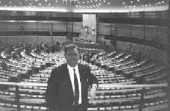 Raksta autors vēsturiskajā Eiropas Savienības sēžu zālē, kas