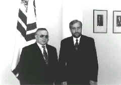 Vakar, 25. aprīlī, pie Ministru prezidenta Andra Šķēles vizītē ieradās Krievijas Federācijas iekšlietu ministrs Anatolijs Kuļikovs, kurš uzturas mūsu valstī. A.Kuļikovs iepazīstināja klātesošos ar kriminogēno situāciju Krievijā, atzīmējot zināmu uzlabošanos smago noziegumu jomā. Viņš atzina, ka cīņa pret organizēto noziedzību un ekonomiskajiem noziegumiem pagaidām nav pietiekami sekmīga, galvenokārt tas ir nesakārtotas likumdošanas dēļ. Ministru prezidents lūdza izklāstīt prognozes par notikumu attīstību Čečenijas konflikta risināšanā un uzsvēra nepieciešamību panākt vienošanos par nelegālās imigrācijas novēršanu. Runājot par iespējamo notikumu attīstību Čečenijā, A.Kuļikovs izteica cerības, ka problēma kopumā tiks atrisināta jau šajā gadā. Savas vizītes laikā A.Kuļikovs ar Latvijas iekšlietu ministru Daini Turlo saskaņo sadarbības iespējas nelegālās imigrācijas novēršanā, kā arī ieroču, kultūras vērtību un stratēģisko materiālu kontrabandas apkarošanā. Paredzams, ka tiks parakstīta divpusēja vienošanās par sadarbību cīņā pret organizēto noziedzību. Attēlos: pie Latvijas Ministru prezidenta karoga; sarunu brīdī; pārdomās ar Krievijas vēstnieku Aleksandru Raņņihu un Latvijas iekšlietu ministru Daini Turlo. Valdības preses dienests. Foto: Māris Kaparkalējs, “LV”
