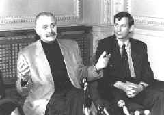 Kinorežisors un aktieris Ņikita Mihalkovs un Kultūras ministrs Ojārs Spārītis