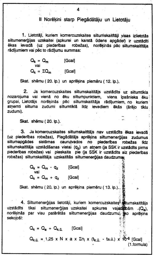 4. Noteikt, ka līdz šim praksē pielietotā Siltuma enerģijas atlaides uzskaites instrukcija patērētājiem (apstiprināta 1992. gada 14. decembrī ) ir zaudējusi spēku.