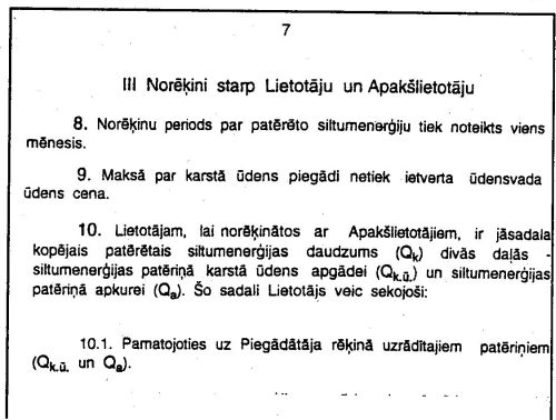 2.1. Visiem namīpašniekiem, neatkarīgi no īpašuma formas, pāriet uz norēķinu kārtību ar dzīvokļu īrniekiem, īpašniekiem, nomniekiem (Apakšlietotājiem), nosakot maksu par karstā ūdens piegādi un apkuri katru mēnesi pēc ēkas ievadā (uz piederības robežas) uzstādītā siltumskaitītāja rādījumiem vai, ja nav uzstādīts siltumskaitītājs, pēc aprēķinu ceļā noteiktā siltumenerģijas patēriņa daudzuma.