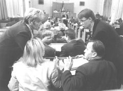 komisijām otrreizējai izskatīšanai tika nodots “Obligātā militārā dienesta likums”, 1.lasījumā — pieņemts likumprojekts “Grozījumi likumā “Par valsts pensijām””; netika atbalstīti lēmumu projekti — “Par neuzticības izteikšanu izglītības un zinātnes ministram M.Grīnblatam”, “Par neuzticības izteikšanu labklājības ministram V.Makarovam” Foto: Uldis Pāže — “Latvijas Vēstnesim”