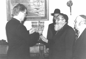 N.Barkāns pasniedza G.Ulmanim Izraēlā darināto sudraba svečturi, kas esot ebreju tautas simbols un izsakot tautas gribasspēka un gara uzvaru pār jebkuru vardarbību. “Lai Dievs svētī Latviju!” teica N.Barkāns, novēlot Latvijas valstij mūžam saglabāt brīvību.