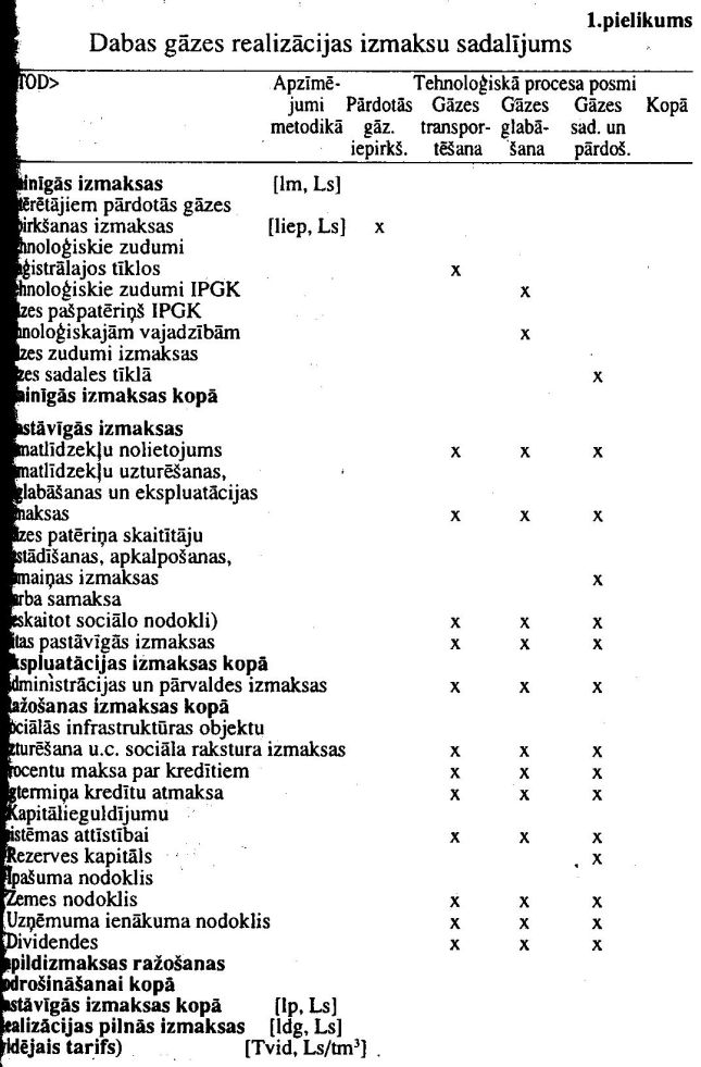 1.2. Dabas un sašķidrinātās gāzes tarifu aprēķina metodika,