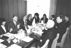 Darba grupa līguma sagatavošanai Tieslietu ministrijas valsts sekretāra Aivara Maldupa (augšējā attēlā pa labi) vadībā tika izveidota ar Ministru prezidenta 1996.gada 27. decembra rīkojumu, un tajā darbojas pārstāvji no Tieslietu un Ārlietu ministrijas, kā arī no Latvijas vēstniecības pie Svētā Krēsla. Līguma projektu iecerēts izstrādāt līdz šā gada 15.maijam.