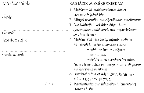 12. Izmantojot makšķerēšanas karti, stingri jāievēro spēkā esošie makšķerēšanas noteikumi, kā arī jāņem vērā makšķernieka tiesības bez maksas izmantot “tauvas joslu”: gar jūras piekrasti — 20 m, gar privāto ūdeņu krastiem — 4m, gar pārējo ūdeņu krastiem — 10 m.