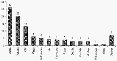 Apskatot ārvalstu tiešo investīciju sadalījumu pa visām valstīm uz 1995.gada beigām pēc Valsts statistikas komitejas sniegtās informācijas var secināt, ka lielākais ārvalstu ieguldījumu īpatsvars ir Dānijai (skat. 3.6.zīm.), kurai pieder līdz šim lielākais investīciju projekts Latvijā uzņēmumā SIA "LATTELEKOM". Nākošā lielākā valsts pēc investīciju kopapjoma Latvijas uzņēmumos ir Krievija. Tai pieder 51,2 milj. latu, no kuriem lielākais ieguldījums 1995.gadā ir Latvijas-Krievijas naftas un naftas produktu transporta kopuzņēmumā SIA "Latrostrans", kur partnerim no Krievijas uzņēmumam a/s "Transnefteprodukt" pieder 36,6, milj. latu.