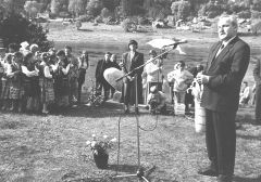 — Katrai vietai ir savs lepnums. Un tas prasās saucams vārdā. Daugavas vietas kļūst vērtīgākas, ja tās sauc vārdā. Jo tad tās — piepulcina. Tad mēs nosaucam viņu pienesumu. Un tas jau arī ir tas, kas mums vajadzīgs — pienesums. Tautas bagātība. Šie krasti, jā, ir izmocīti tāpat kā mūsu tauta. Bet tie atkal un atkal ir atdeves spējīgi. Un mūsu tautas godu vēros pēc mūsu lielo upju krastiem. Sakopsim savu likteņupi? Bet sakopsim arī ziņu par to! Neatliksim to uz labāku iespēju brīžiem! Muti cilvēks mazgā katru dienu, gudrākie iet arī pirtī gan sliktos, gan labos laikos. Daugava ir mūsu mute. Daugava ir mūsu portrets, dzīva bilde mūsu acu priekšā. Mums jāpiesauc viņas formas un krāsas. Un jāierāmē, kā katrs savā teritorijā to redzam, savā profesijā un savā jušanā.