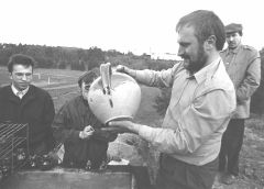 Valdis Pauliņš ņem no cepļa jaunos podus