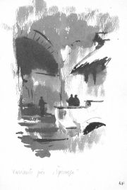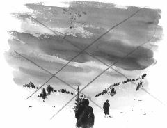 Ar savu neparastumu citu lēģerī darināto akvareļu vidū izceļas dažas lapas, kurām mākslinieks izmantojis abas puses. It kā “īstie” darbi ir kalnaine ar pils aprisēm un slaidām papelēm vai cipresēm priekšplānā un ar pamatīga cietokšņa ēkām kādas ūdenstilpnes piekrastē. Bet varbūt šīs ainavas (kas nav parakstītas ar autora iniciāļiem K.F.) bijušas tikai aizsegs, lai izdabūtu laukā lapu otrā pusē skatāmās neapšaubāmi ziemeļnieciskās tundras noskaņas? Tās pārsvītrotas ar četrām līnijām, kas veido it kā restes. Vai tie būtu paša autora izbrāķēti neveiksmīgi uzmetumi? Bet tad taču nebija vērts šīs skices sūtīt uz Latviju un tik ilgi glabāt, jo autors līdz pat savai aiziešanai laiku pa laikam esot pārlūkojis Sibīrijā sastrādāto.