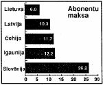Lietuvā par ciparu tīkla telefona ievilkšanu ir jāmaksā 900 litu, par analogā tīkla telefonu — 130 litu, kas ir vairākas reizes mazāk nekā citās Austrumeiropas valstīs. Kā rāda tabulas, gan telefona abonenta maksa (litos), gan starppilsētu sarunu vienas minūtes cena Lietuvā ir zemāka nekā citās valstīs. Turklāt no pulksten 22 līdz 6 un nedēļas nogalēs starppilsētu sarunām ir 50 procentu atlaide, bet starpvalstu sarunām Eiropā — 30 procentu atlaide.