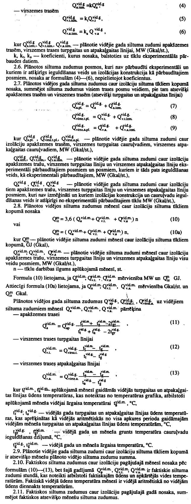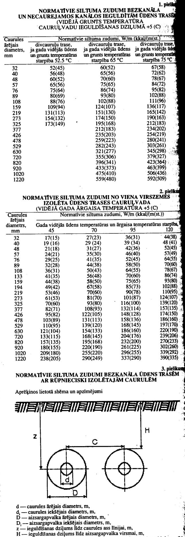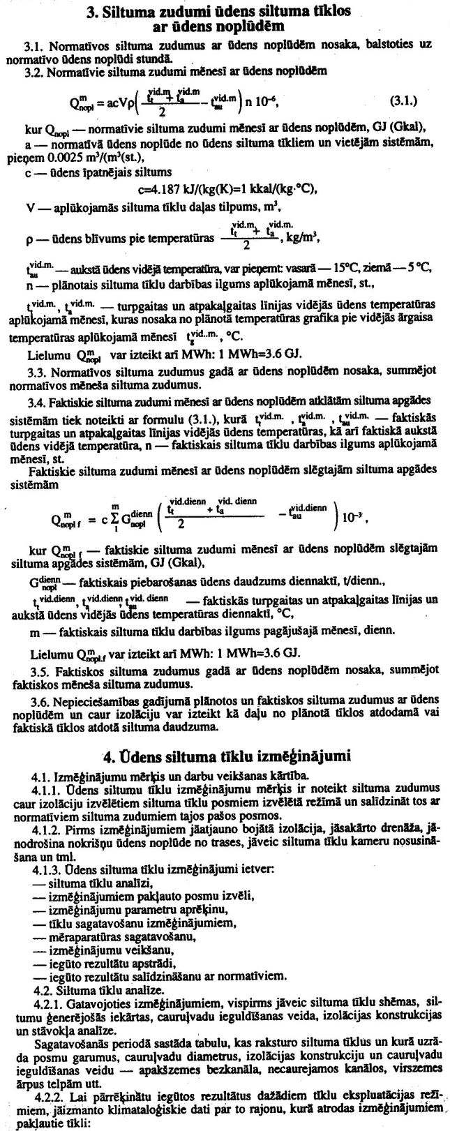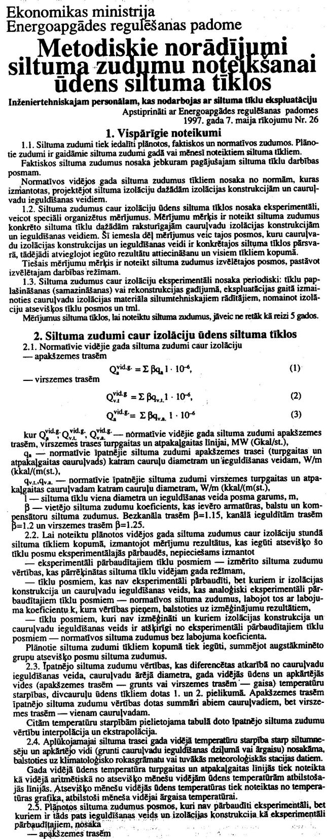 Metodiskie norādījumi siltuma zuduma noteikšanai ūdens siltuma tīklos. Publicēts oficiālajā laikrakstā "Latvijas Vēstnesis", 12.06.1997., Nr. 142 https://www.vestnesis.lv/ta/id/29955