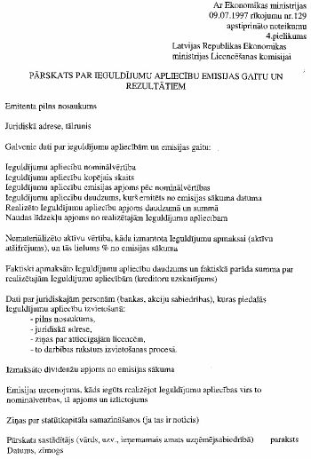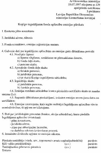 Saskaņā ar Ministru kabineta 1995.gada 15.augusta noteikumiem nr.253 “Noteikumi par starpniecības uzņēmumu (statūtsabiedrību) darbību ar privatizācijas sertifikātiem” un 1997.gada 10.jūnija Ministru kabineta noteikumiem nr.209 “Grozījumi Ministru kabineta 1995.gada 15 augusta noteikumos nr.253 “Noteikumi par starpniecības uzņēmumu (statūtsabiedrību) darbību ar privatizācijas sertifikātiem””: