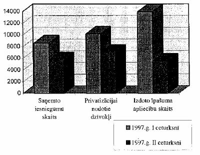 1997.gada II ceturksnī pašvaldībās saņemti 5739 iesniegumi (aprīlī - 2184 iesniegumi, maijā - 1914 iesniegumi, jūnijā - 1641 iesniegums) no dzīvojamo māju īrniekiem par dzīvokļu nodošanu īpašumā līdz dzīvojamo māju privatizācijai.