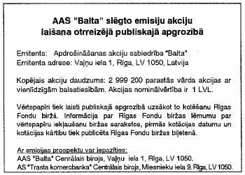 Šie dati atbilst informācijai, kas tika sniegta Latvijas Bankā.