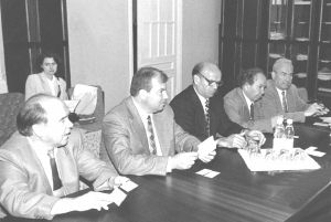 priekšsēdētāju Vasiliju Ļihačovu (otrais no kreisās)