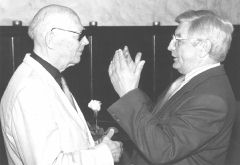 “Ar savu suni es vienmēr esmu runājis latviski” — tā Triju Zvaigžņu ordeņa virsnieks Gunars Janovskis nobeidz savu autobiogrāfisko stāstījumu, kas lasāms “Latvijas Vēstneša” 30. jūlija numurā. Ar šiem pašiem vārdiem savas smeldzīgās ilgas pēc Dzimtenes rakstnieks izteica arī 22.augusta sarīkojumā Reiterna namā, kurā viņš piedalījās kopā ar dzīvesbiedri Sarmīti Janovsku–Ērenpreisu, ar gleznām, akvareļiem un Rīgā iznākošo Kopoto rakstu 1.un 2.sējumu. Reiterna nama pagrabiņš vēlreiz apliecināja, ka tā akmens sienas spēj brīnumaini izcelt mākslas darbu krāsas un gaismēnas un griestu velves iejūtīgi atbalso dzejas vārdu un mūzikas skaņas. Kaut daudzi Gunara Janovska talanta cienītāji sarīkojuma oficiālajā daļā (ja tā var teikt par gluži neoficiālā, mīļā garā noritējušo pirmo daļu) zālē netika vietu trūkuma dēļ, rakstnieka balss bija labi dzirdama arī gaitenī un savu paldies viņam varēja pateikt visi, kas to vēlējās (blakus, attēlā — rakstnieks Zigmunds Skujiņš). Jau pērn pārkāpis 80 gadu slieksni un šajā pavasarī pārcietis sirds kaiti, rakstnieks sava jaunrades vakara viesus sveica veselīgi možs un starojoši sirsnīgs: