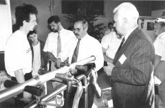 Ar izstādi “Vecauce '97” iepazīstas zemkopības ministrs Andris Rāviņš (centrā) un “Vecauces” direktors Ludvigs Teteris