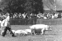 Talsu rajona SIA “Avoti” demonstrē Latvijas balto sivēnmāti ar trīspadsmit sivēniem