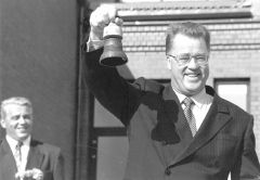 Valsts prezidents Guntis Ulmanis — atklājot Pļavnieku ģimnāziju