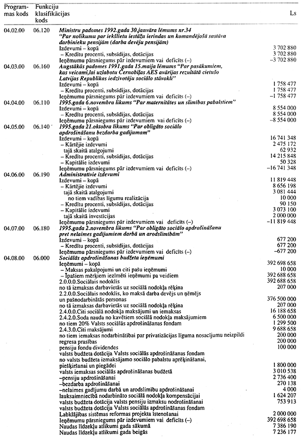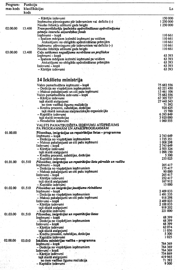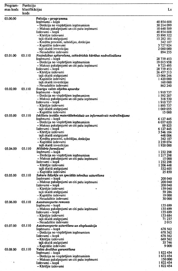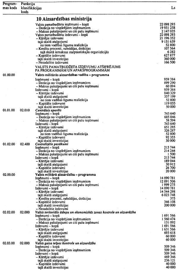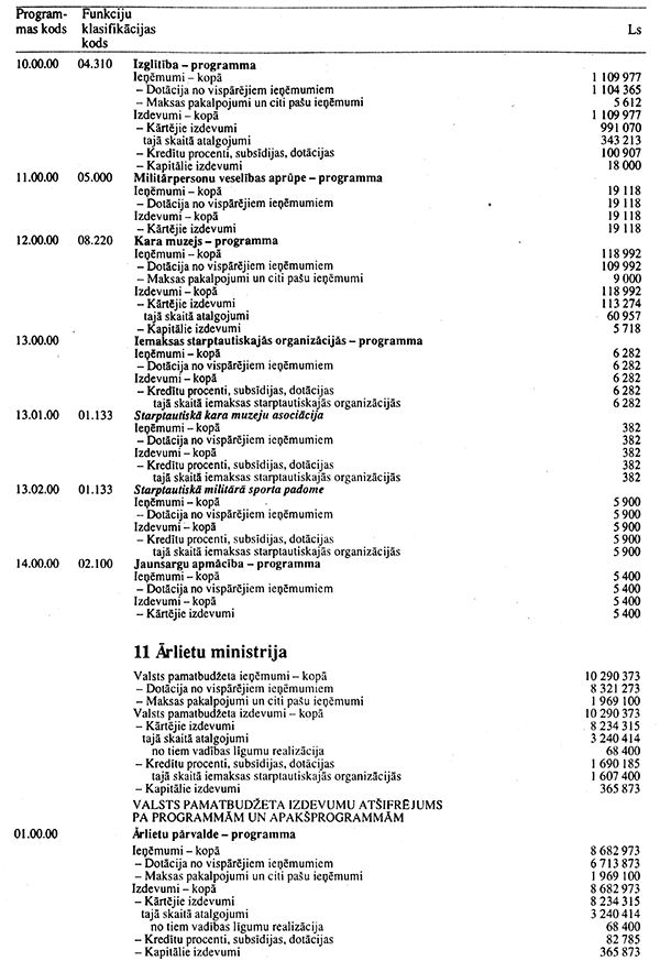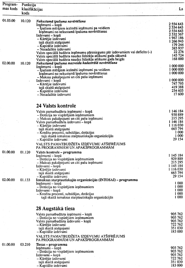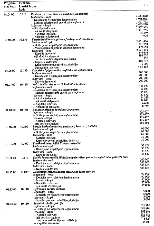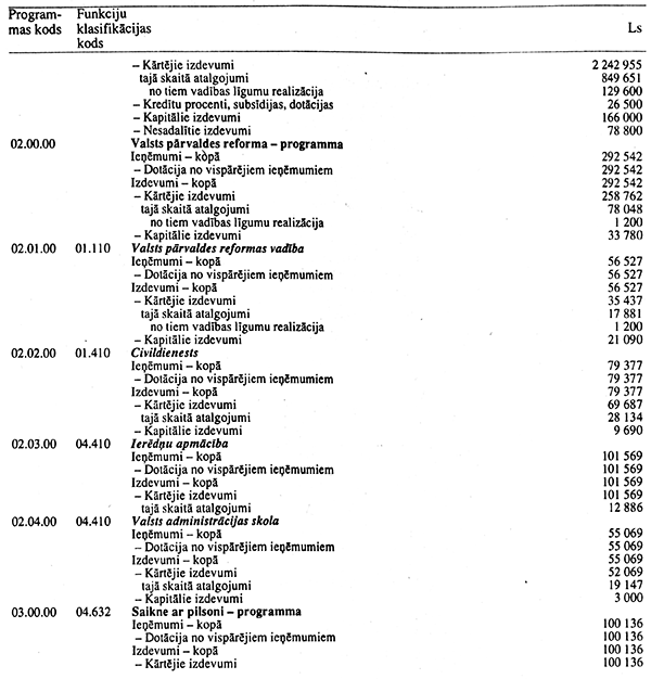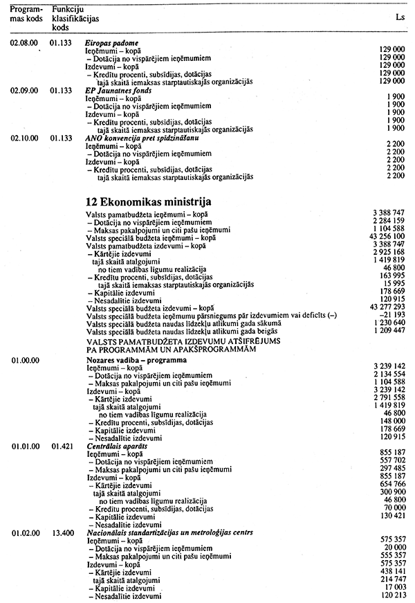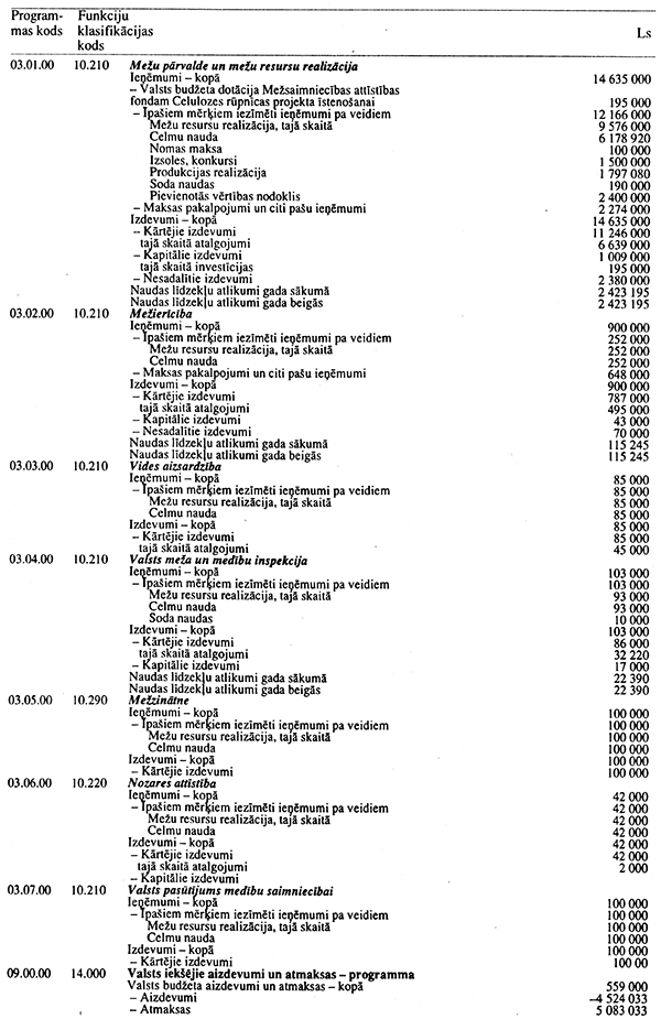 "Apstiprināt valsts pamatbudžetu 1997.gadam izdevumos 574 764 457 latu apmērā, valsts pamatbudžeta ieņēmumu pārsniegumu pār izdevumiem 1997.gadā 39 911 latu apmērā un valsts speciālo budžetu izdevumos 601 813 997 latu apmērā saskaņā ar 2.pielikumu."