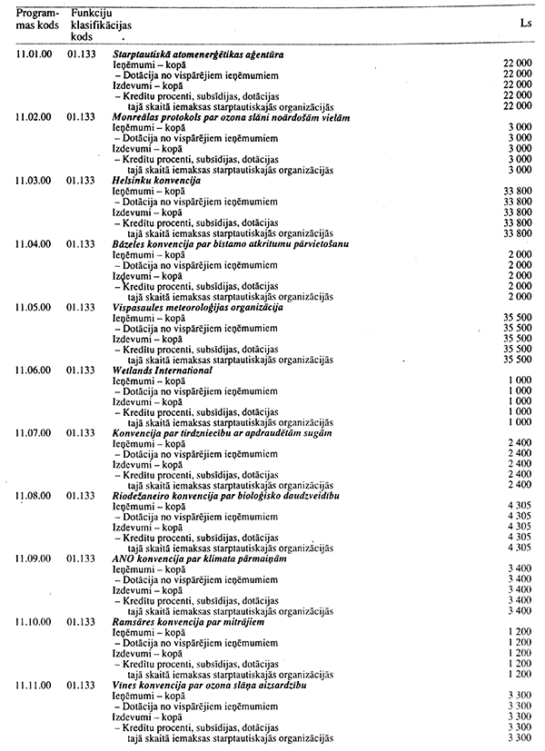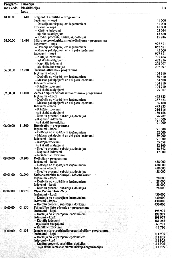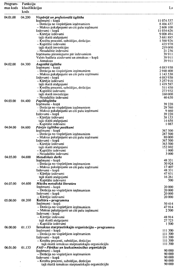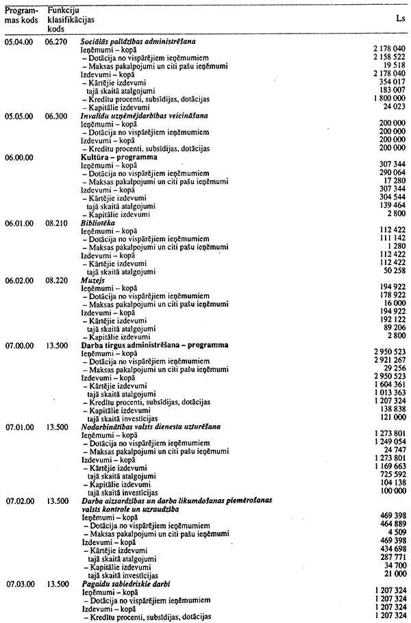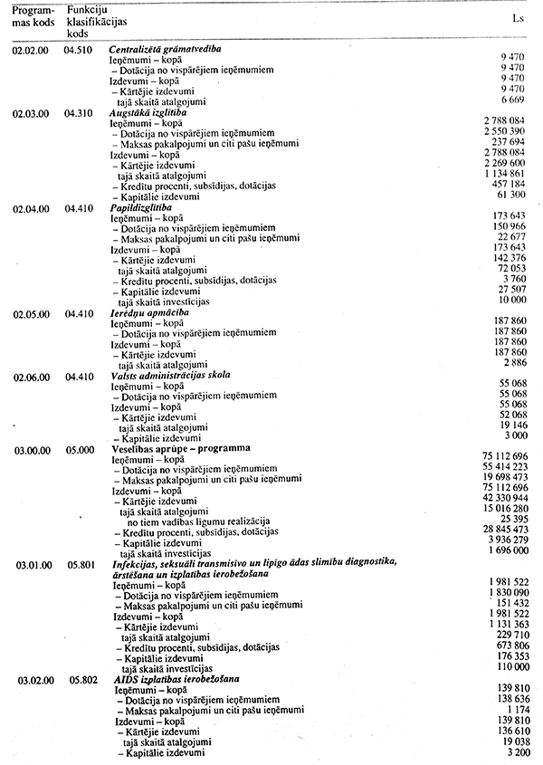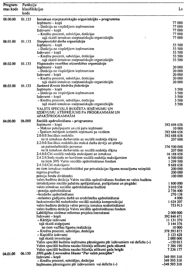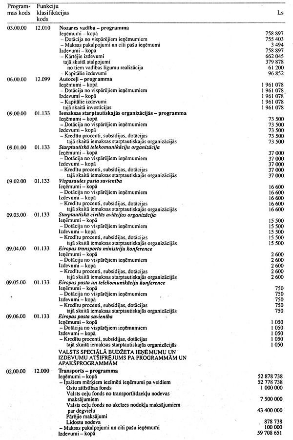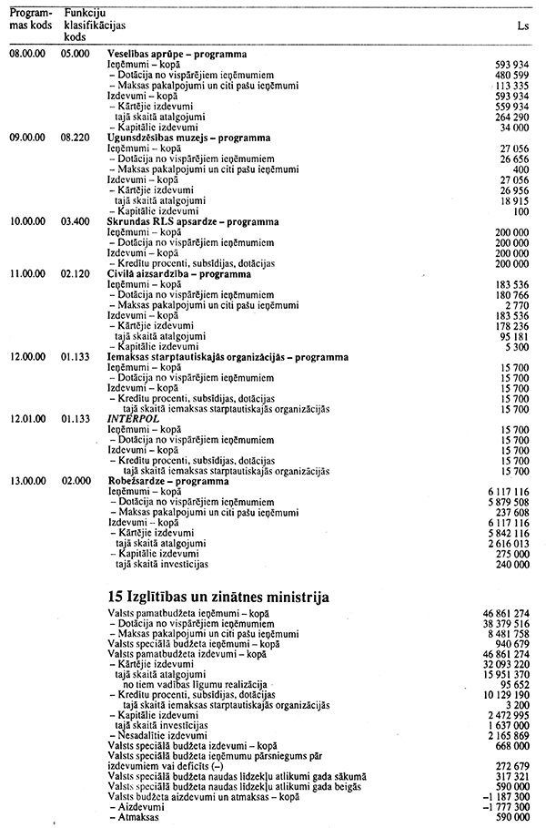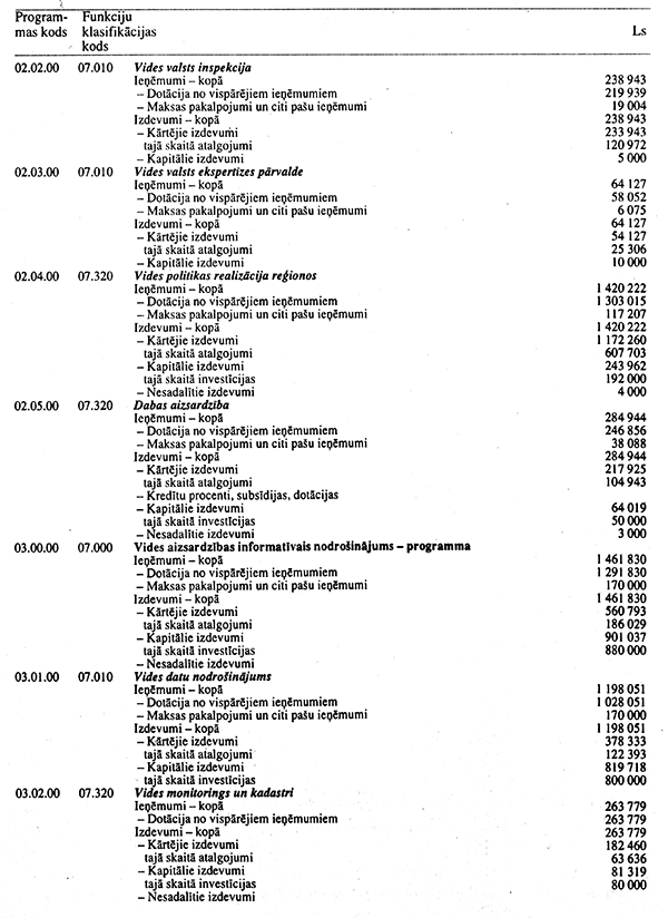 "Apstiprināt valsts pamatbudžetu 1997.gadam izdevumos 574 764 457 latu apmērā, valsts pamatbudžeta ieņēmumu pārsniegumu pār izdevumiem 1997.gadā 39 911 latu apmērā un valsts speciālo budžetu izdevumos 601 813 997 latu apmērā saskaņā ar 2.pielikumu."