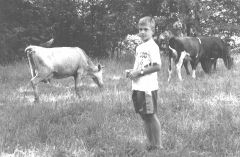 Saimniekdēls Mārtiņš veikli rīkojas ar elektrisko ganu, un esam jau kalnā pie brūnaļām, raibaļām un, lūk, arī Latvijas zilā govs. Dabas krāšņums šeit nudien sasaucas ar vēl šodien dzīvo leģendu — zilā govs esot izcēlusies no jūras putām (patiešām tā ir sirmi–balta) un tāpēc visvairāk izplatīta jūras piekrastes ciemos. Laika gaitā šī izplatība mainījusies uz iekšzemi, zilo govju nav vairs daudz un tāpēc katrai govij, arī “Lulēnu” Salnai, ir nozīmīga loma ģenētiskā fonda saglabāšanā.