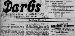 Ļoti pateicos Jums par man piesūtīto “Darba” pirmo numuru no 10.marta š.g. Lasot Jūsu avīzi, pašā sākumā patīkami uzkrīt viņas zīmīgais nosaukums un ievadraksts. Pilnīgi piekrītu Jums, ka darbs ir tas spēcīgais faktors, kurš, neskatoties uz latviešu tautas smago, ciešanu pilno pagātni, viņā uzturējis enerģijas un uzņēmības garu. Tikai darbs var izlabot to postu, ko kara vētras mūsu zemei nodarījušas. Tikai caur neatlaidīgu radošu darbu Latvija kļūst par neatkarīgu valsti.