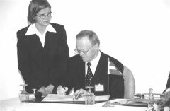 Sadarbības līgumu starp abām valstīm paraksta Latvijas Republikas ārlietu ministrs Valdis Birkavs un Indijas Republikas Civilās aviācijas ministrijas valsts ministre Ksaksanti Natarajana