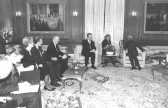 Prezidenta pils ziemeļpuses viesistabā Latvijas delegācija sarunās ar prezidentu