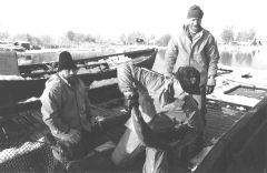 Vecdaugavas zvejnieki lašu slaukšanas laikā