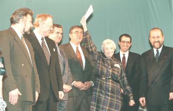 Šveices fonda pārstāvji, kā arī ārlietu ministrs Valdis Birkavs,