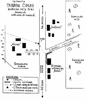 Eduards Čoka, kuru D.Mušperts labi pazinis, dzimis 1917. gada 16. novembrī savas mātesmātes mājā Ipiķu pagasta Tellēs. Ar vairāku gadu atstarpi pasaulē nākuši jaunākie brāļi Kārlis un Jānis. Eduards, kļuvis Rūjienas ģimnāzists, iestājies skautu organizācijā, piedalījies skolas pūtēju orķestrī, sporta pulciņa nodarbībās, jo vēlējies līdzināties savam novadniekam, olimpietim Jānism Dimzam. Pēc ģimnāzijas beigšanas 1937. gadā sākās karadienests Latvijas armijā. Komandieri atzinuši, ka Eduardam jādodas uz instruktoru rotu un kara skolu, kas pēc mūsu valsts okupācijas tika izformēta. Tāpēc 1942. gada 1. septembrī viņš sācis sekmīgi strādāt par Rūjienas ģimnāzijas vingrošanas skolotāju. 1944. gada martā Eduards iesaukts latviešu leģionā, pēc apmācībām Vaiņodē nonācis frontē, bet kādā jūlija dienā ar pārsaitētu roku un rētu vaigā atgriezies Rūjienā, jo saņēmis atļauju ievainojumus dziedēt mājas apstākļos. Eduards apmeties pie savas kolēģes un draudzenes Eleonoras Grīnbergas viņas dzīvoklī. Drīz vien arī D.Mušperts un daudzi citi Rūjienas puiši iesaukti leģionā, 15. divīzijā, un nosūtīti uz Dancigu, un par Eduarda tālākām gaitām uzzināts tikai 1945. gada augustā pēc atgriešanās no Vācijas. Pēc izveseļošanās Eduards atsācis darbu Rūjienas vidusskolā, taču kādā 1946. gada janvāra naktī pie Grīnbergas dzīvokļa klaudzinājuši arestētāji. No otrā stāva loga pa virvi Eduards paguvis nolaisties zemē un pazust nezināmā virzienā. Sākumā leitnants E.Čoka ar kādu rūjienieti slēpies Ipiķu mežos, pēc tam, apvienojušies grupā ar Visvaldi Kašu, Arturu Johansonu, dārznieku Berginu, naukšēnieti Laubertu un citiem, uzsākuši partizānu gaitas Jeru pagastā. Bunkurs bijis uzbūvēts biezoknī, kurā neesot pieklīdis neviens ogotājs vai sēņotājs. Partizāniem maizi cepusi Rūdagu saimniece Linde, palīdzību sniegušas arī Saliņu māju saimniece, Johansona mamma un citi novadnieki. Zemnieki partizāniem uzticējušies, jo saskatījuši viņos savus aizstāvjus pret okupantu izrīcībām. Liktenīgajā naktī Daumants, kam pēc dokumentu pārbaudes čekisti nav vairs pievērsuši uzmanību, piegājis šosejas malā gulošam nekustīgam ķermenim — nošautajam leitnantam E.Čokam. Blakus atradies automāts, bet roka sažņaugusi pistoli. Uz šosejas — trīs nāvīgi ievainoti čekisti, viens jau bijis beidzis elpot. Eduards bija nācis gar Vāles māju riju, kad viņu pamanījuši un pavēlējuši apstāties minētie trīs patruļnieki. Pa apšaudes laiku pienākusi čekistu kolonna, kas saklupusi mežniecības eglīšu dzīvžogā un atklājusi viesuļuguni pret partizānu.