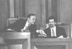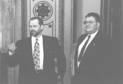 Darbā: Saeimas priekšsēdētājs Alfreds Čepānis un Saeimas priekšsēdētāja biedrs Aigars Jirgens; deputāti Jānis Kalviņš un Aleksandrs Golubovs