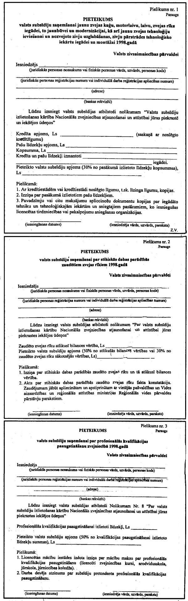 9.3. pieteikums valsts subsīdiju saņemšanai par profesionālās kvalifikācijas paaugstināšanu zvejniecībā (pielikums nr.3).