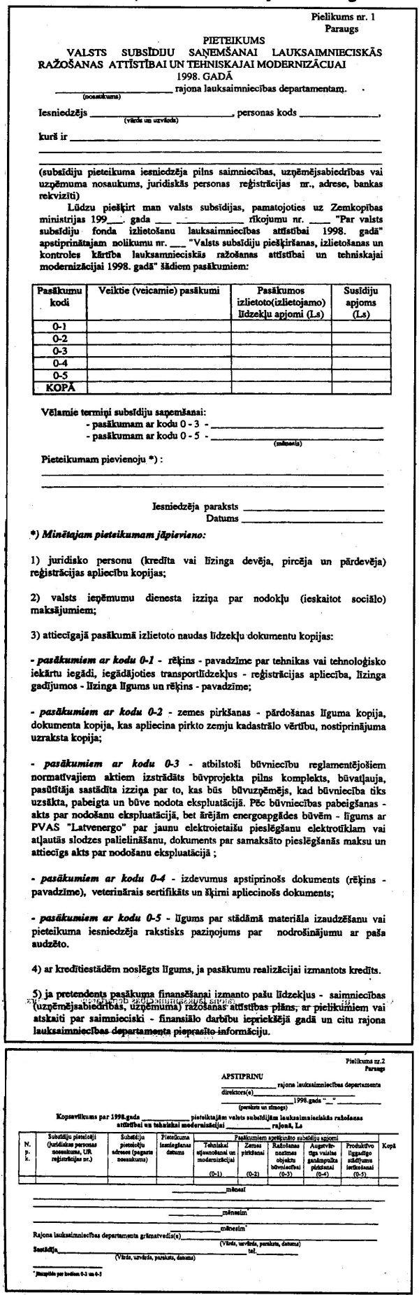 2.2. nolikumu nr. 2 "Valsts subsīdiju izlietošanas kārtība lauksaimnieciskās ražošanas attīstībai un tehniskai modernizācijai 1998.gadā";