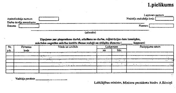9. Par darbinieka pieņemšanu darbā un atlaišanu no darba tiek paziņots, iesniedzot ziņojumu (1.pielikums).