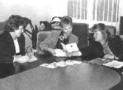 Attēlos, iespaidos daloties (no kreisās): Ministru prezidenta biedrs, labklājības ministrs A.Bērziņš, Saeimas sekretāra biedre I.Folkmane un pārējās mūsu pārstāves — A.Švarckopfa, A.Tūna, A.V.Tērauda, A.Daudze.