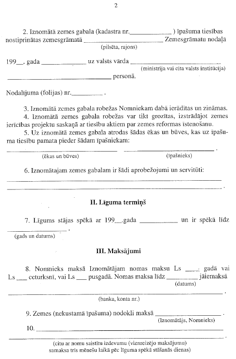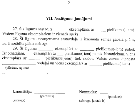 9. Mēneša laikā pēc visu līguma noslēgšanai nepieciešamo dokumentu saņemšanas iznomātājs sagatavo zemes nomas līgumu parakstīšanai.