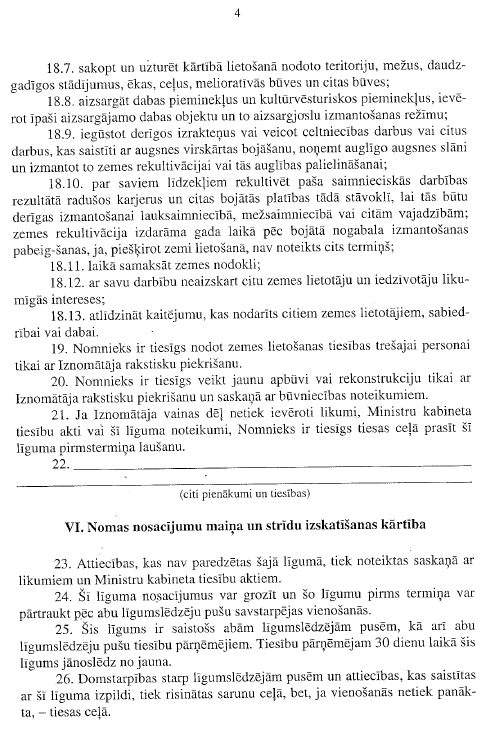 4. Valsts zemes nomas tipveida līgumu (tālāk tekstā — "zemes nomas līgums") var slēgt tikai pēc tam, kad iznomājamā zemes gabala īpašuma tiesības nostiprinātas zemesgrāmatā uz valsts vārda.